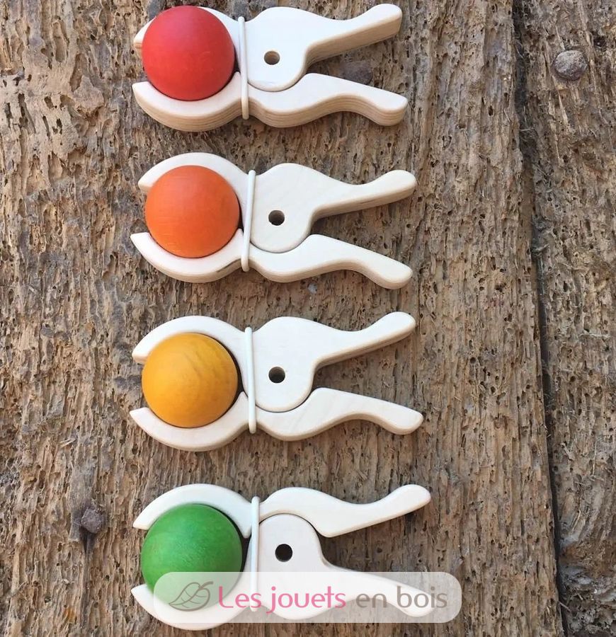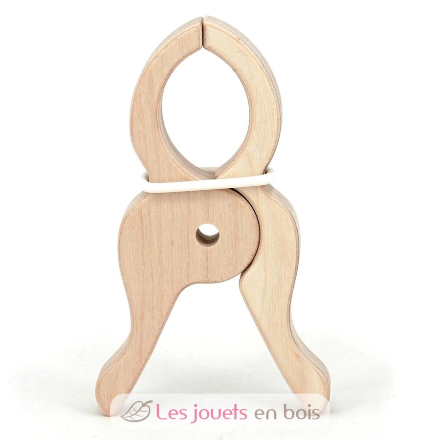 Es un material también estupendo para el juego libre no estructurado, ya que lo único que mantiene unidas las dos partes de la pinza es una goma elástica que puede retirarse con facilidad. Así, pueden convertirse también en divertidos caballos de paseo para pequeños muñecos, en olas de mar, bancos, pulpos… Seguro que su imaginación les lleva más allá.