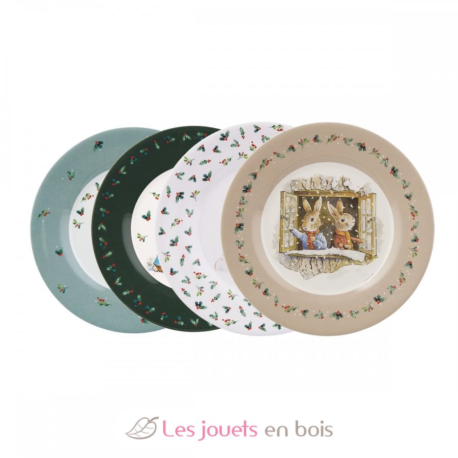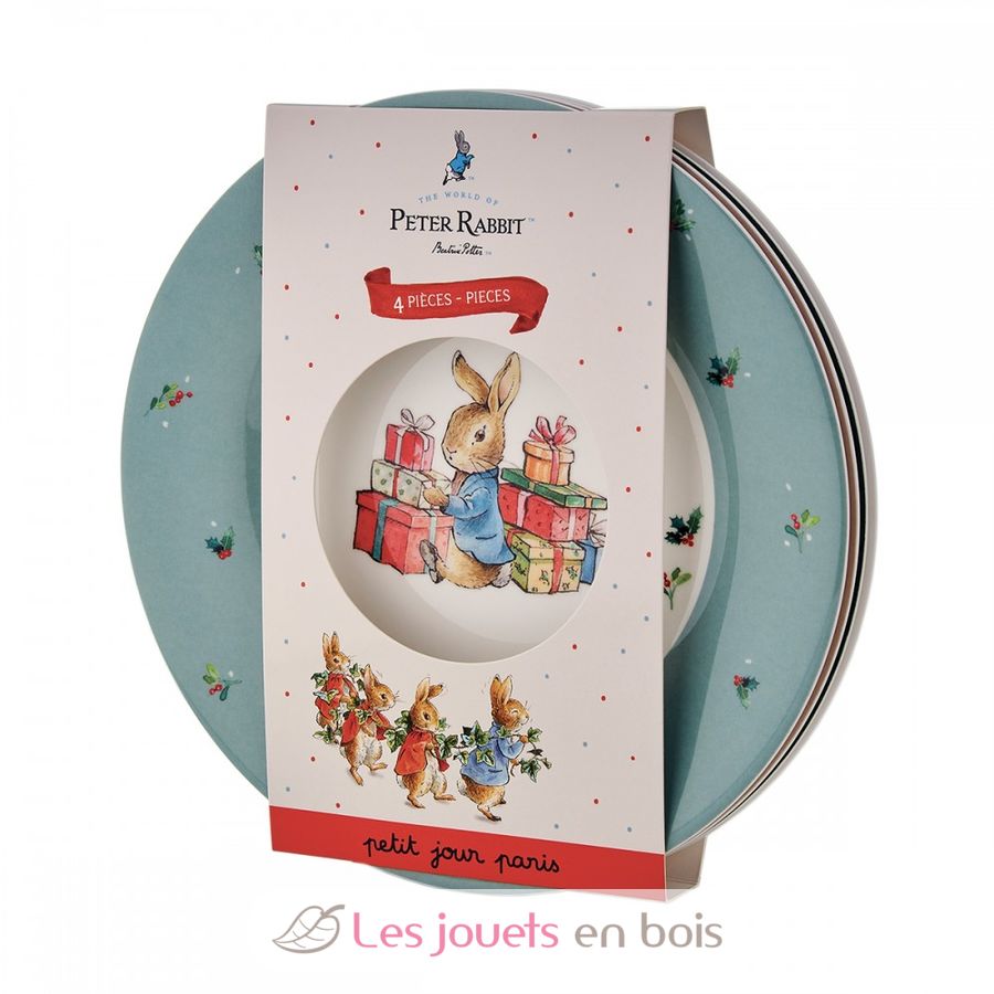 4 Platos Peter Rabbit Navidad 20 cm de diámetro, una vajilla infantil de la marca Petit Jour.