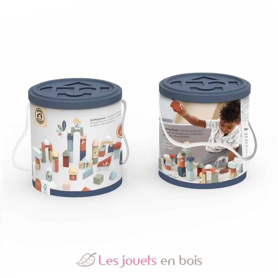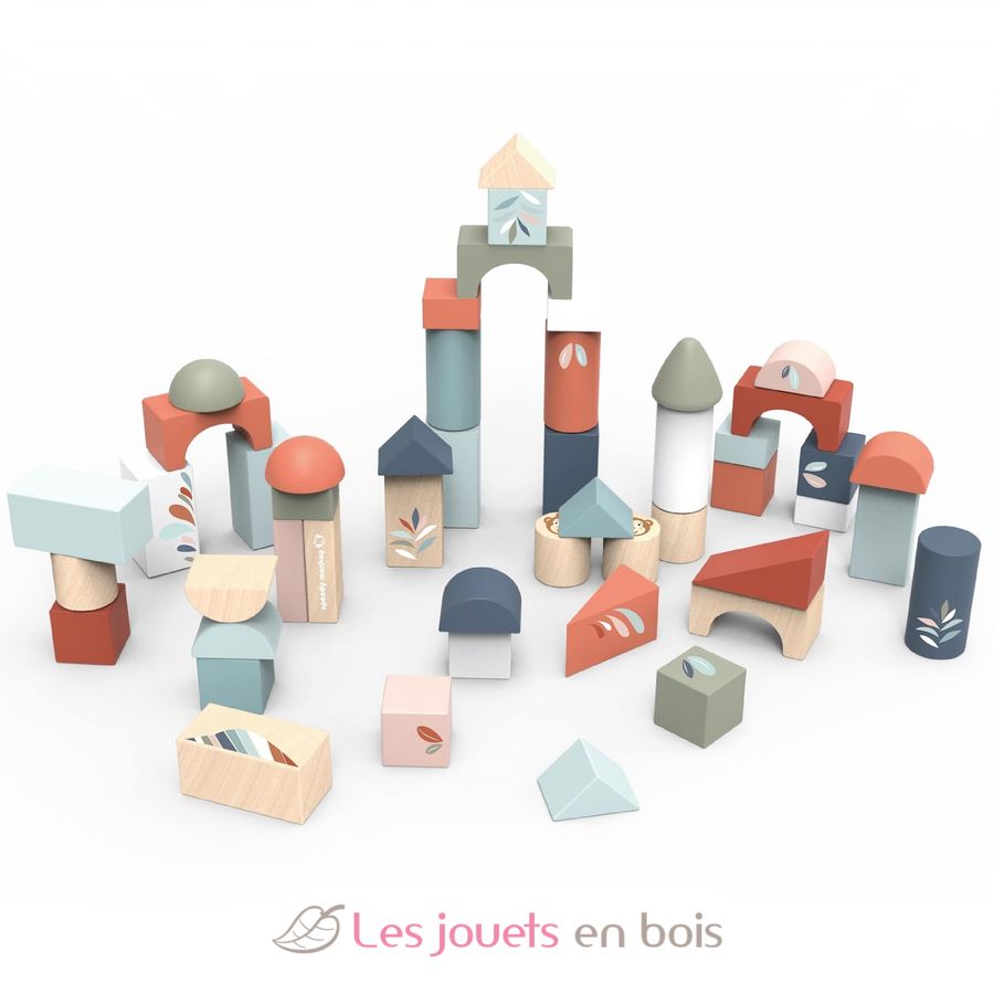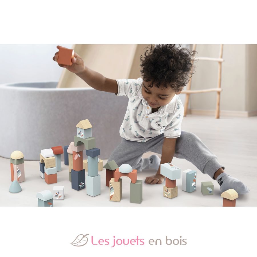 Este set de 50 coloridos bloques de construcción de madera con certificación FSC es un juguete imprescindible para desarrollar la coordinación ojo-mano de los niños pequeños.