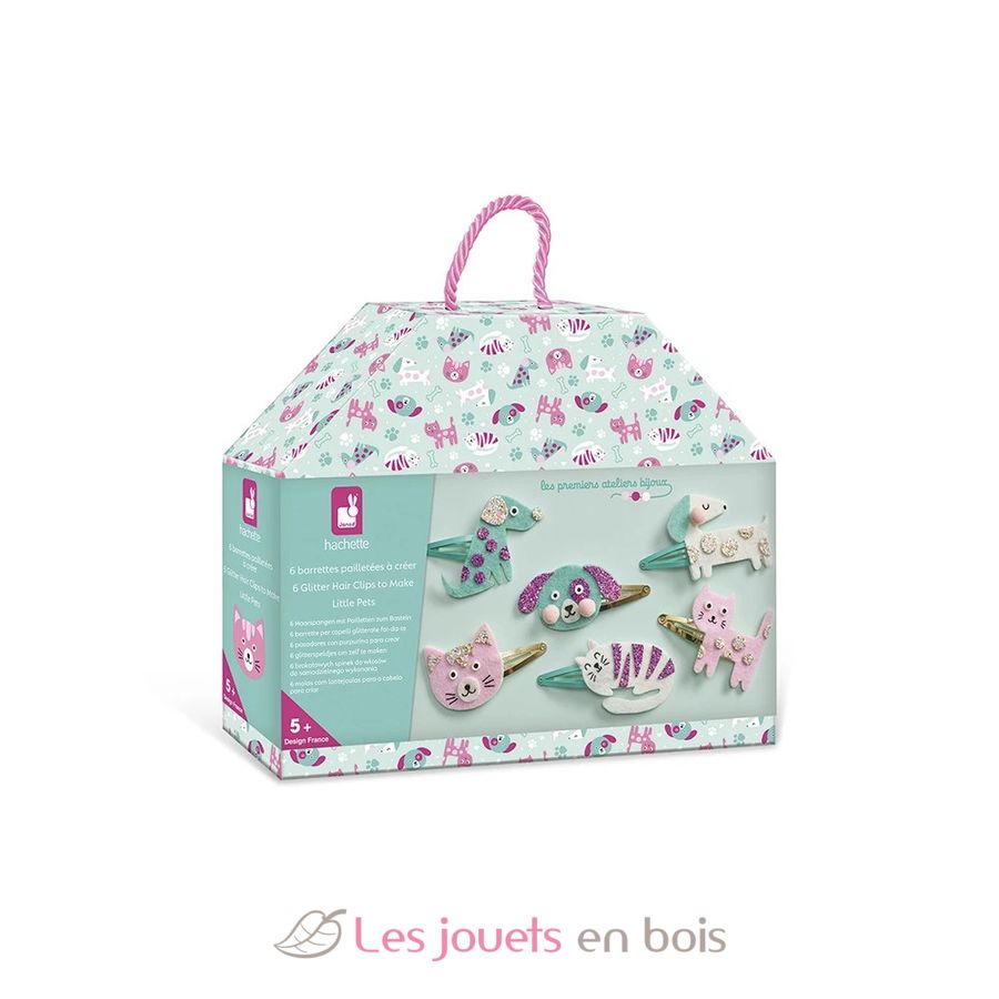 Descubre el kit creativo 6 pasadores con purpurina para crear de Janod, una actividad creativa para niños a partir de 5 años.