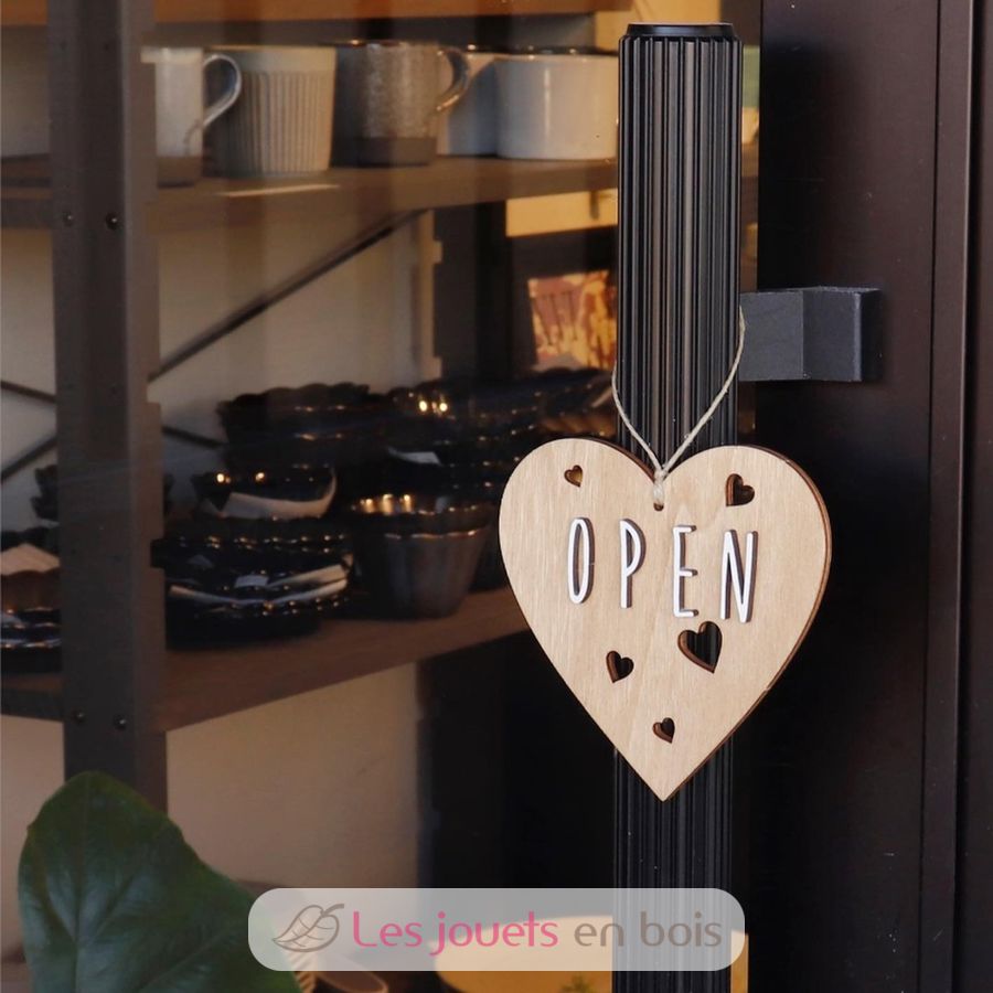 El kit incluye: 1 corazón de madera con cuerda incluida para colgarla; 1 hoja de letras blancas autoadhesivas de madera. Dimensiones: 9 cm.