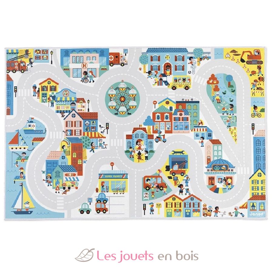 Alfombra con circuito Ciudad, una alfombra de juegos para dormitorios infantiles de la gama Cross Roads de Janod.