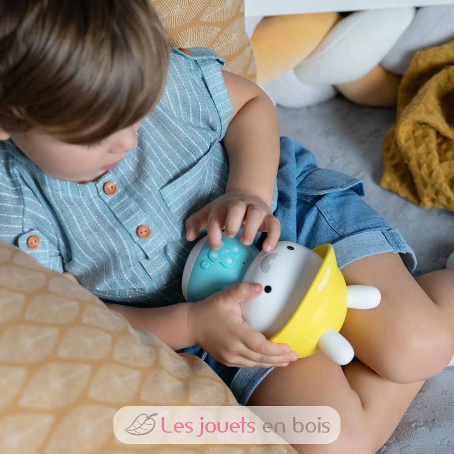 Sus brillantes orejas cambian de color. Fabricadas en suave silicona, las orejas pueden ser masticadas y retorcidas por el bebé sin ningún riesgo. La luz nocturna musical Baby Bunny reproduce música, canciones infantiles y cuentacuentos. Las canciones más bellas de Henri De ya están pregrabadas en esta increíble luz nocturna musical. Edite archivos grabados con su tarjeta SD de 8 GB incorporada y el cable USB suministrado. Funciona de forma inalámbrica. Batería recargable incorporada. 5 horas de autonomía. Recargable gracias a su cable USB.