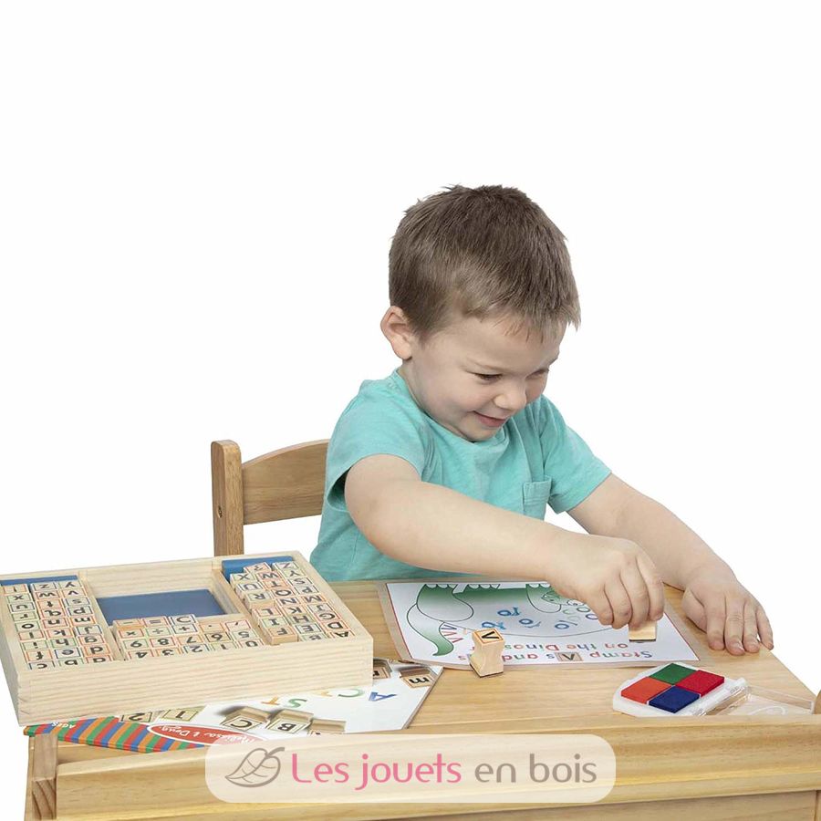Este set incluye 71 almohadillas de tinta de madera, un bloc de actividades en inglés de 25 páginas y almohadillas de tinta en 4 colores diferentes.