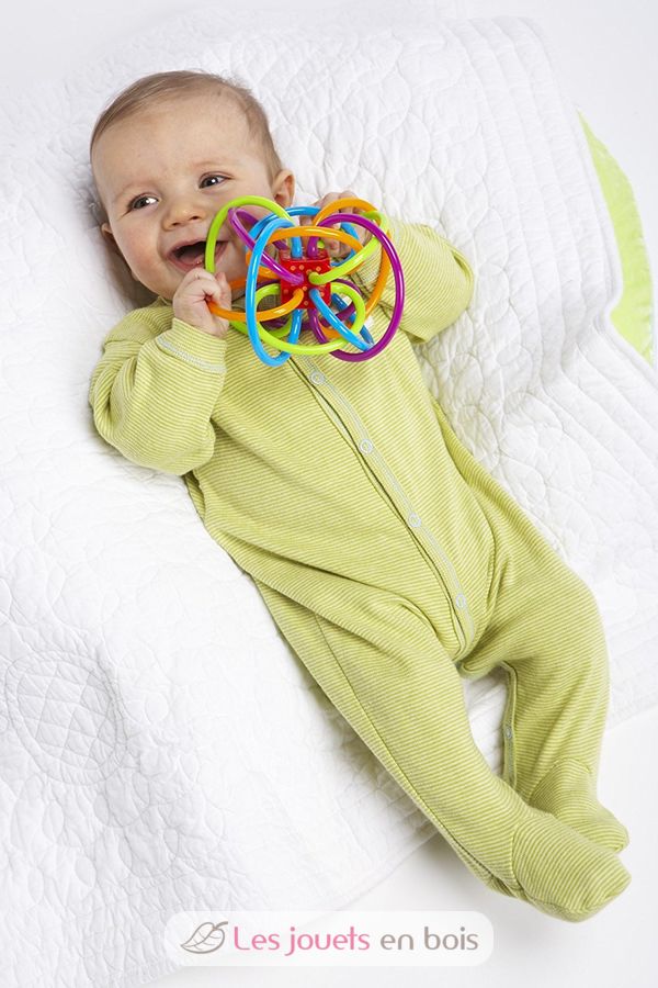 Este sonajero Winkel es un primer mordedor perfecto para el bebé! Sus vibrantes colores dan a este superventas un aspecto brillante y divertido. Incluye un juego de lazos enredados fáciles de agarrar para las manitas, así como un sonajero central en forma de cubo que despertará y entretendrá a los bebés. Los padres pueden poner este juguete de plástico maleable en la nevera para hacer un anillo de dentición relajante. Ligero, fácil de llevar y manejar para los recién nacidos, Winkel ayuda a desarrollar las habilidades motoras del bebé. Este sonajero está hecho de poliuretano y no contiene BPA ni PVC.