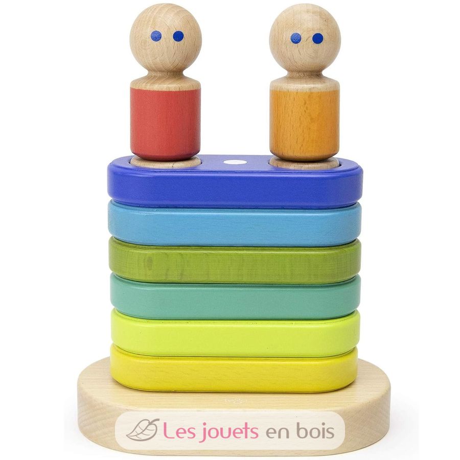 Este juguete apilable se compone de 11 piezas de madera magnéticas.