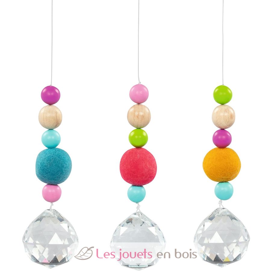 - Prisma de cristal con cuerda de nailon para colgar, adornado con cuentas de madera y lana (colores aleatorios).
