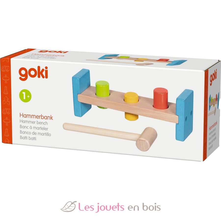 Banco martillo con 3 piezas, un juguete de madera de Goki.