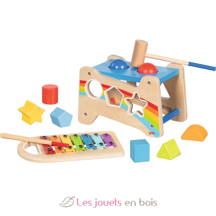 Banco martillo y clasificador de formas con xilófono, un juguete de madera de Goki.