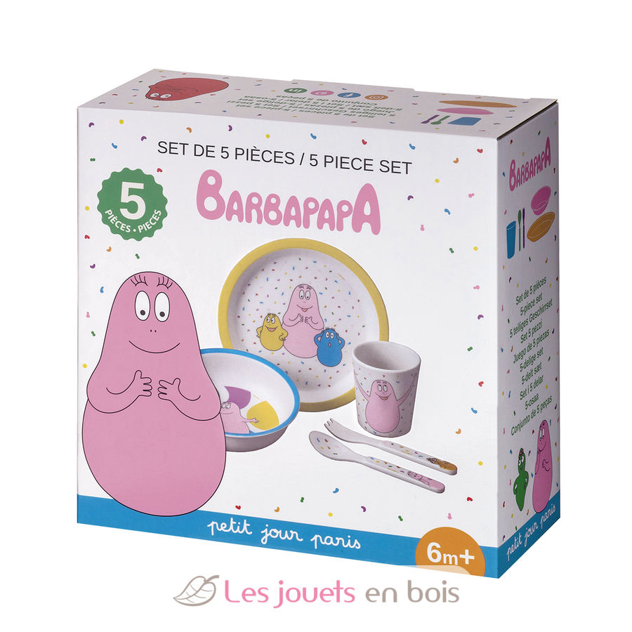 Caja de 5 piezas Barbapapá, una vajilla infantil de la marca Petit Jour.