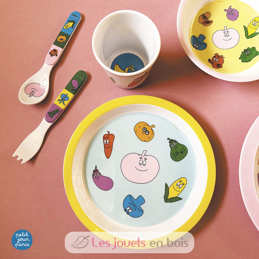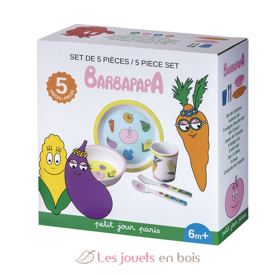 Caja de 5 piezas Barbapapá Veggie, una vajilla infantil de la marca Petit Jour.
