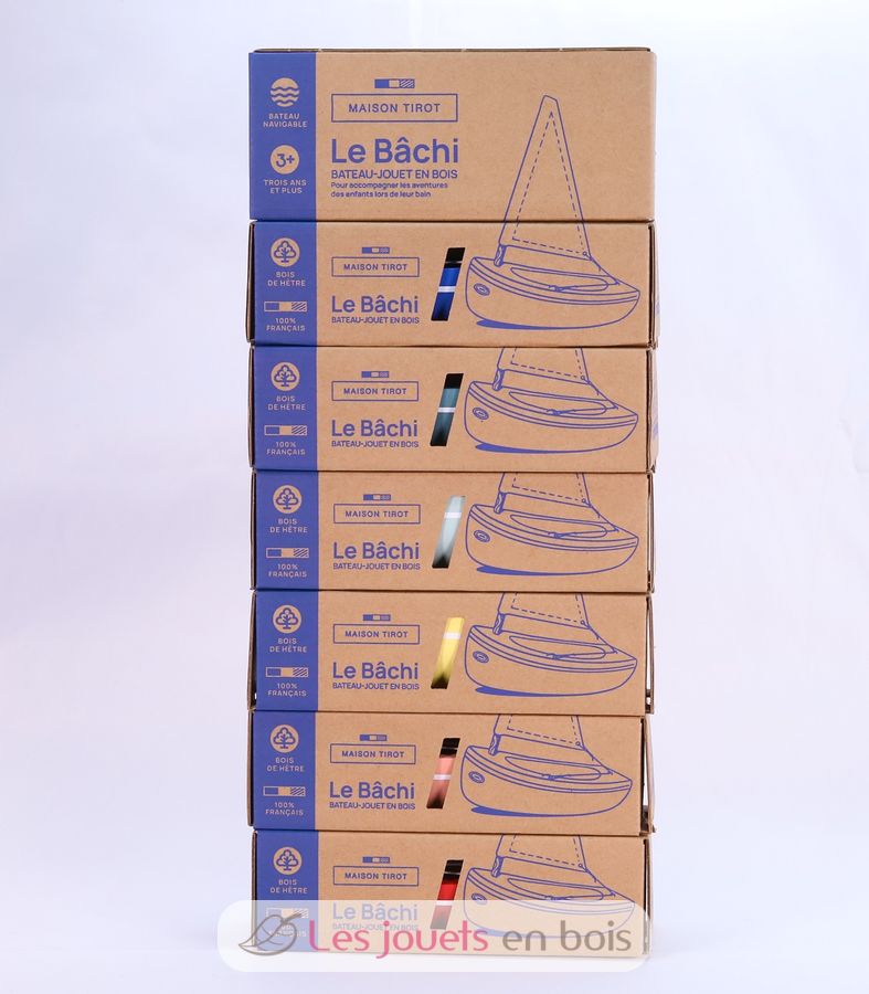 Los barcos de juguete de Tirot están hechos a mano en un taller bretón, utilizando el mismo saber hacer y los mismos gestos transmitidos de generación en generación desde 1946. Robustos, vivirán muchos años siempre que se les presten los cuidados necesarios. En efecto, la madera es un material vivo que reacciona con el agua. A pesar de todo el cuidado puesto en la fabricación de estas embarcaciones, es posible que se deterioren al estar en contacto prolongado con el agua. Es importante dejar secar la embarcación a la sombra y lejos del calor excesivo después de cada uso. En particular, evite secar el barco sobre un radiador o al sol en verano.