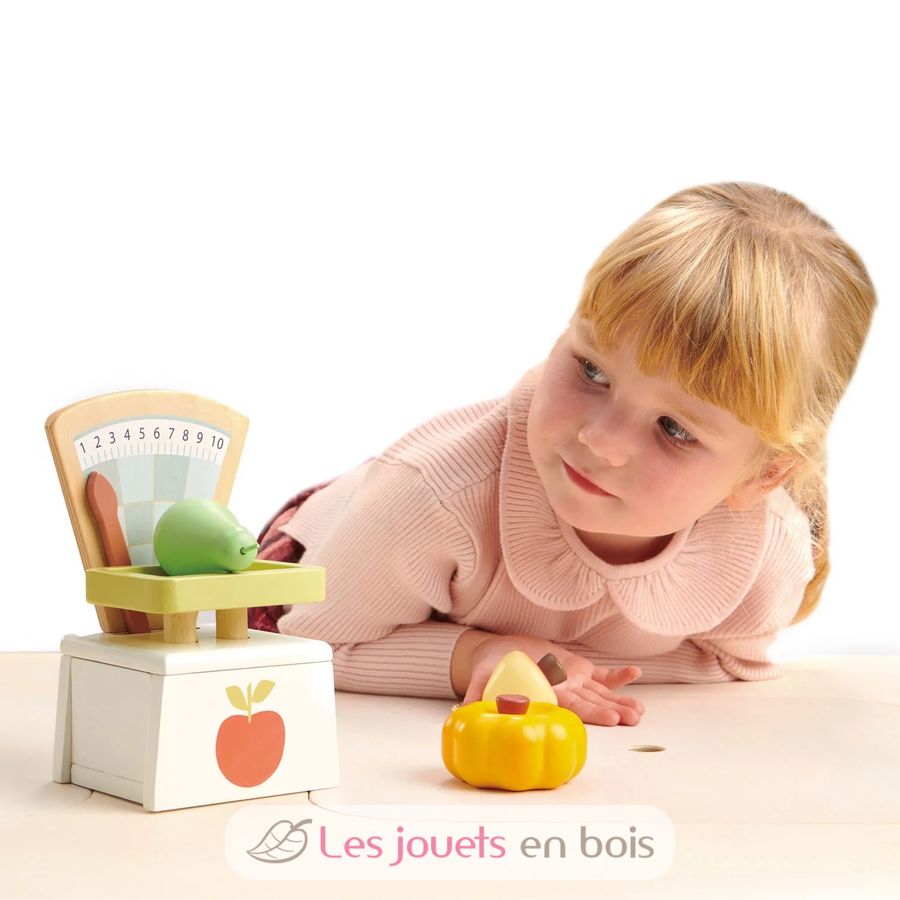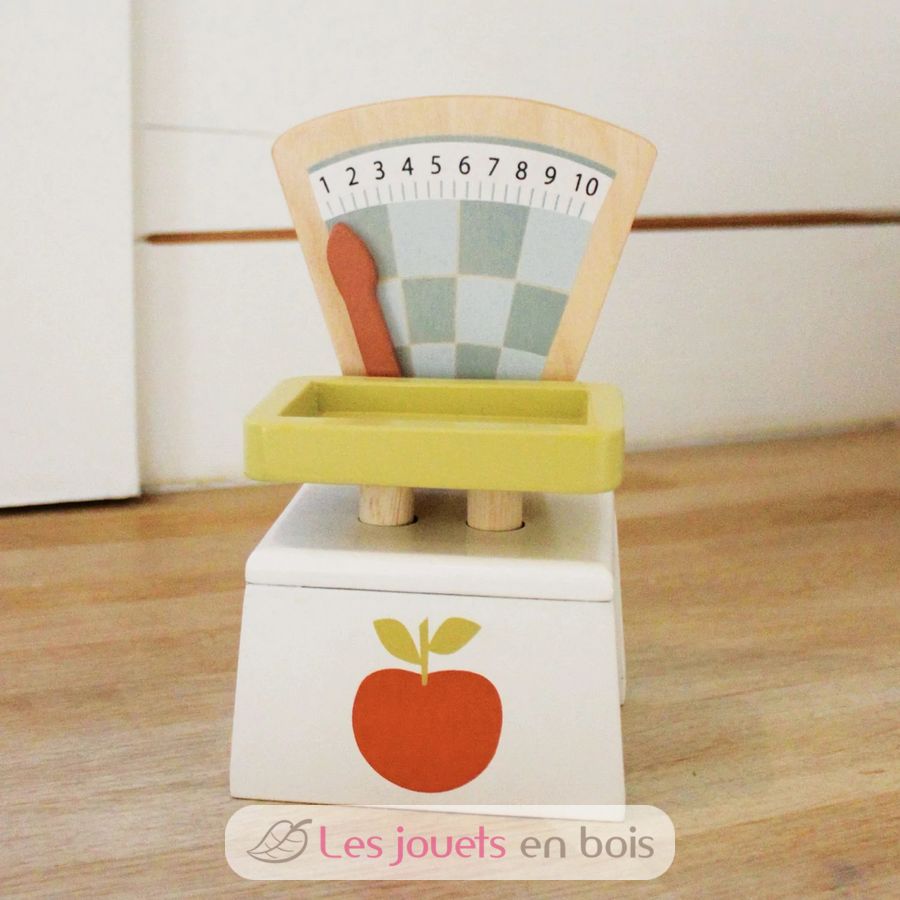 Báscula de madera para niños, un juguete de imitación de Tender Leaf Toys. Número de pieza TL8259.