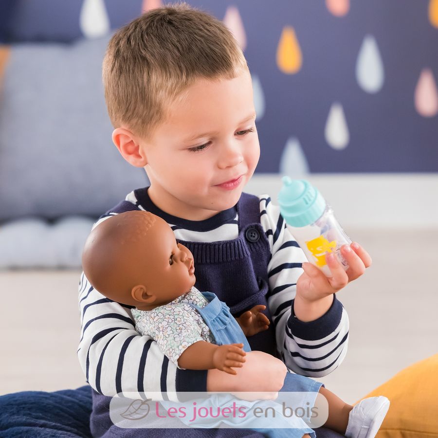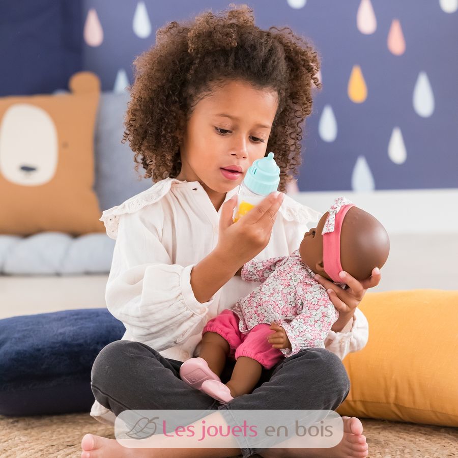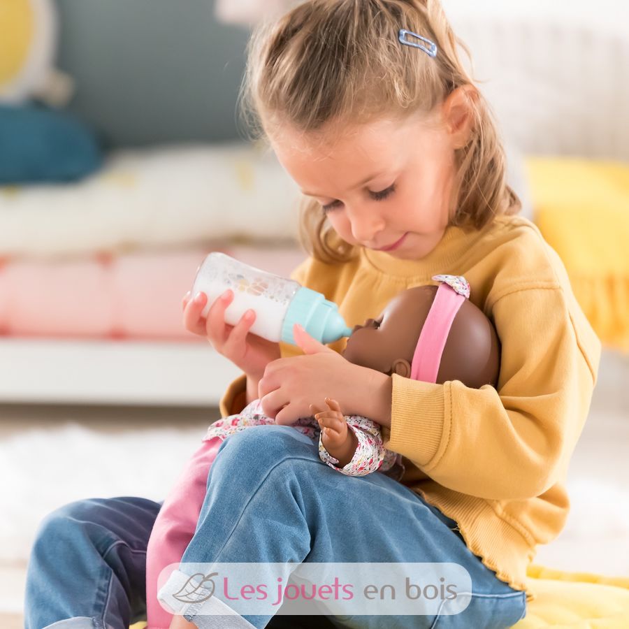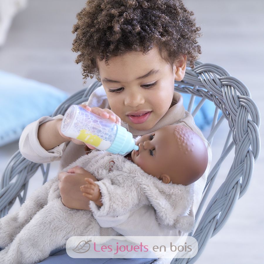 Ideal para alimentar a tu muñeca, el biberón sonoro cuenta con 3 sonidos para variar los escenarios de juego. Fácil de utilizar, el niño puede, gracias a su biberón, oír a su muñeco llorar, reír o incluso succionar la tetina de su biberón, como un auténtico bebé.