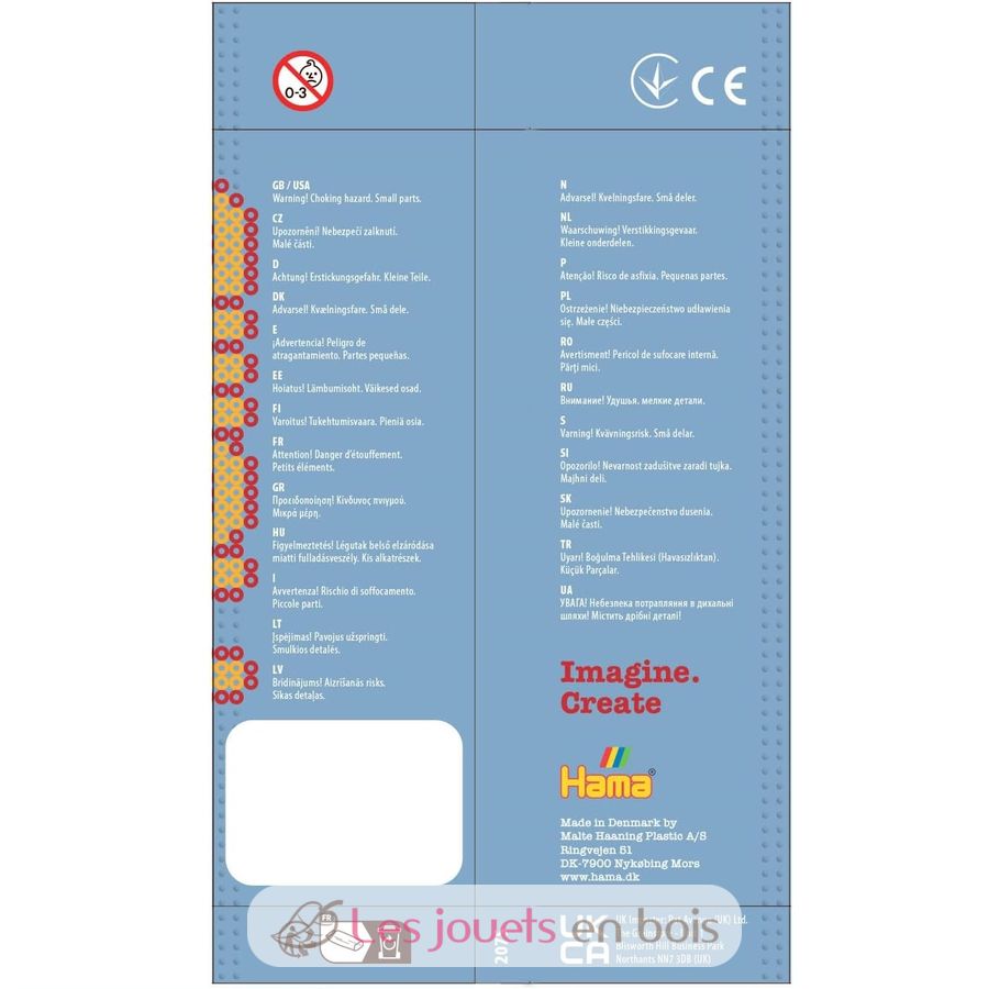 Para utilizarlas como perlas para planchar, simplemente elija un plato, coloque las perlas sobre él y luego fíjelas con la plancha (este paso siempre debe ser realizado por un adulto). Las cuentas Hama también se pueden coser juntas para crear patrones originales.