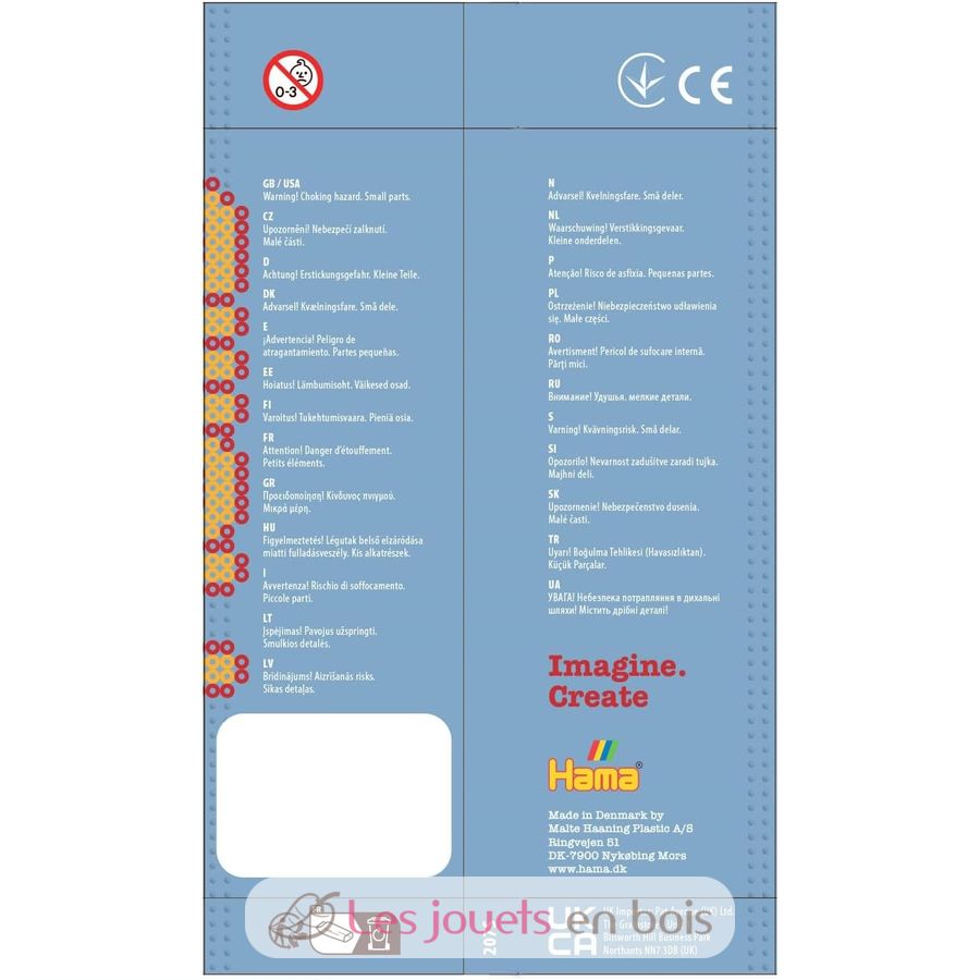 Para utilizarlas como perlas para planchar, simplemente elija un plato, coloque las perlas sobre él y luego fíjelas con la plancha (este paso siempre debe ser realizado por un adulto). Las cuentas Hama también se pueden coser juntas para crear patrones originales.