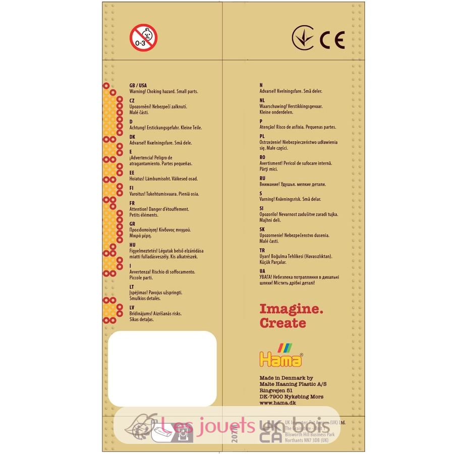 Para utilizarlas como perlas para planchar, simplemente elija un plato, coloque las perlas sobre él y luego fíjelas con la plancha (este paso siempre debe ser realizado por un adulto). Las cuentas Hama también se pueden coser juntas para crear patrones originales.