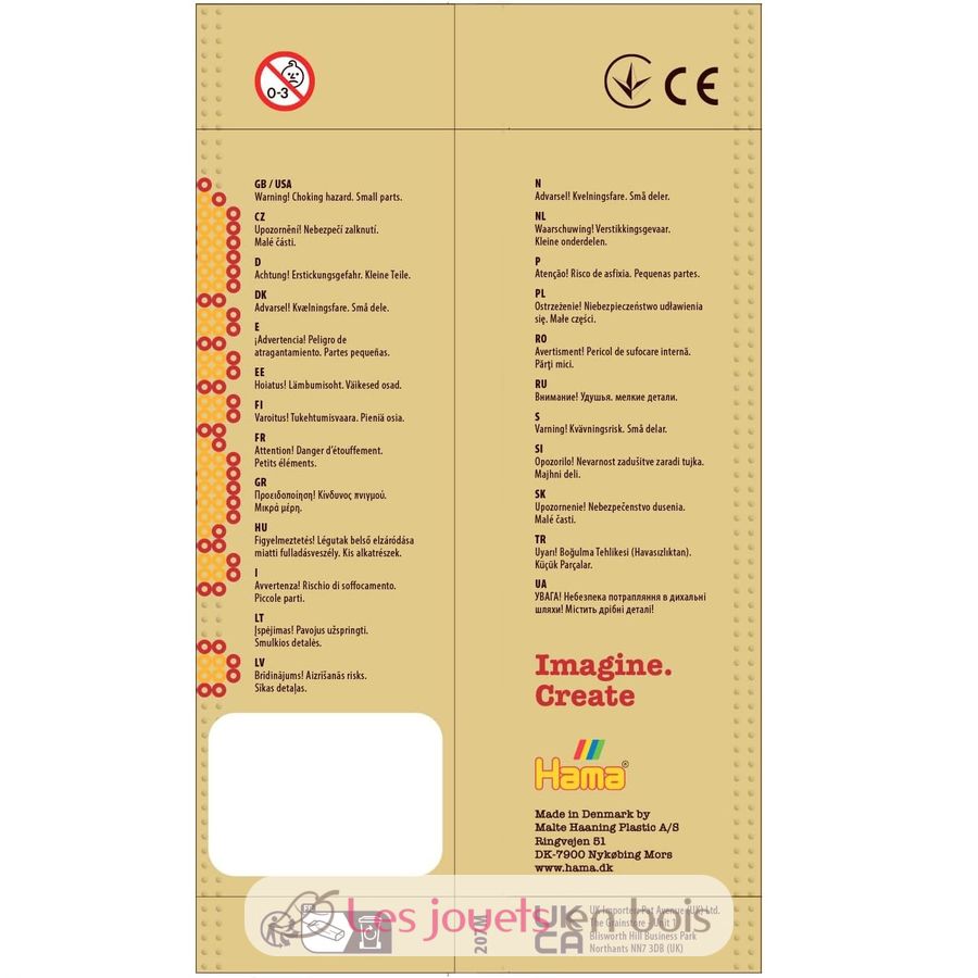 Para utilizarlas como perlas para planchar, simplemente elija un plato, coloque las perlas sobre él y luego fíjelas con la plancha (este paso siempre debe ser realizado por un adulto). Las cuentas Hama también se pueden coser juntas para crear patrones originales.