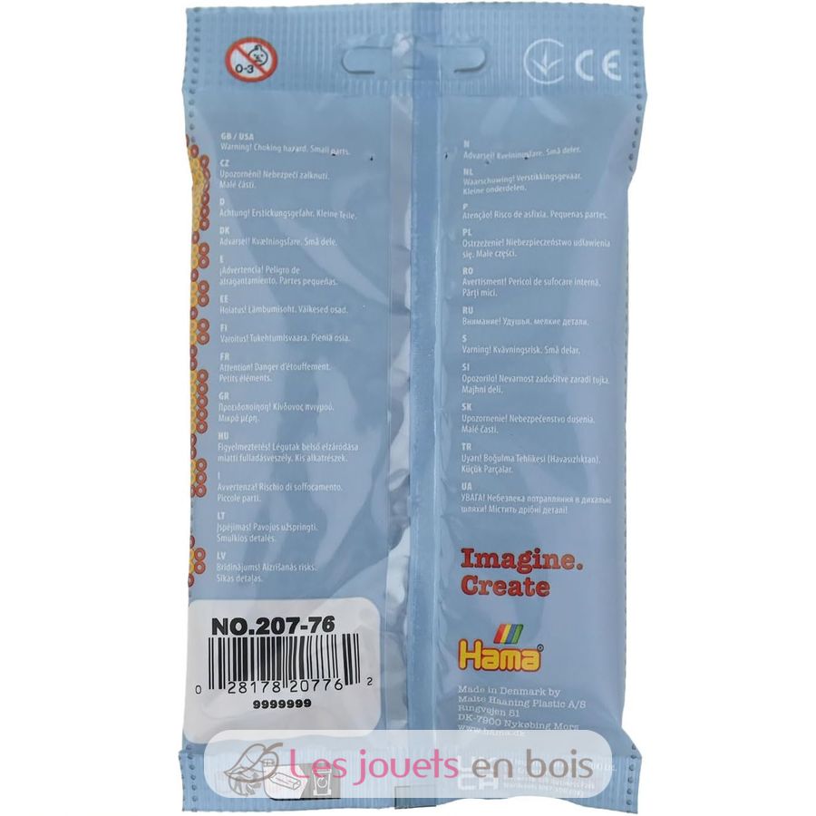 Para utilizarlas como perlas para planchar, simplemente elija un plato, coloque las perlas sobre él y luego fíjelas con la plancha (este paso siempre debe ser realizado por un adulto). Las cuentas Hama también se pueden coser juntas para crear patrones originales.