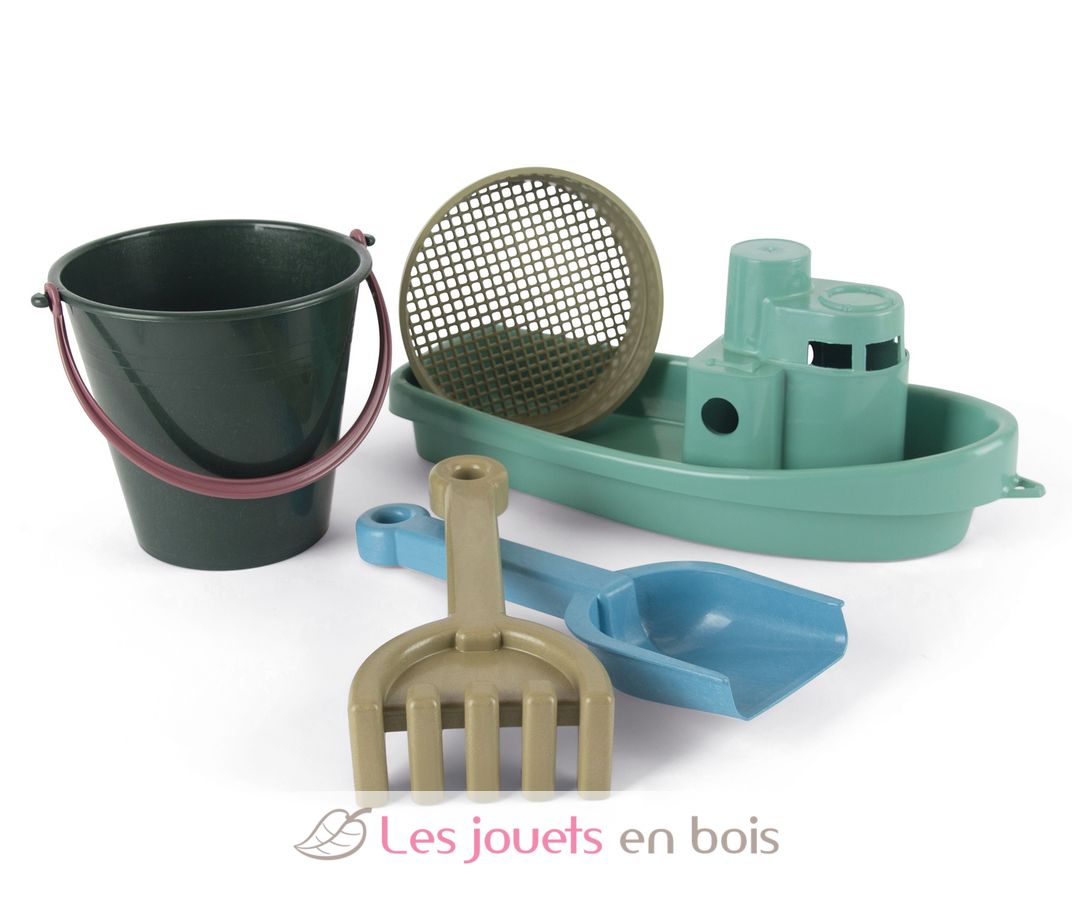 Este juego de playa incluye un balde, un colador de arena, un bote grande, una pala y un rastrillo. Proveniente del universo marítimo Blue Marine Toys de Dantoy, este set de playa ofrece muchas posibilidades para los juegos sensoriales y la exploración de la arena y el agua al aire libre.