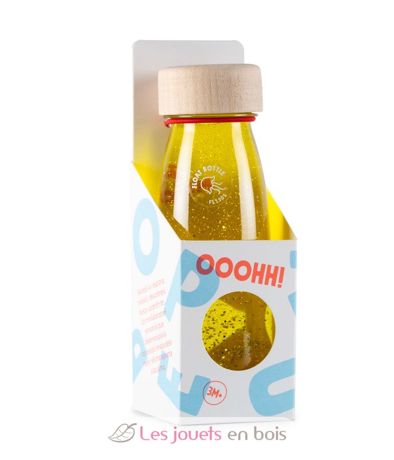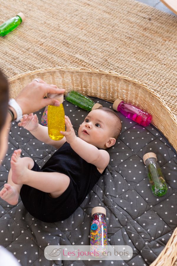 Descubre la botella sensorial Float de la marca Petit Boum. Un colorido juguete de aprendizaje temprano, inspirado en la pedagogía Montessori, que estimula los sentidos de los bebés desde los 3 meses.