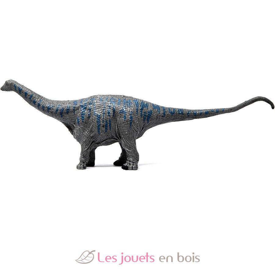El brontosaurio tiene una cola larga, un cuerpo macizo y un cuello cónico. El dinosaurio pesaba unas 15 toneladas y medía unos 22 metros. Hasta la fecha, se ha encontrado un esqueleto de brontosaurio, pero no un cráneo. Sin embargo, es probable que su cabeza fuera pequeña, como la del apatosaurio. El nombre brontosaurio significa "lagarto del trueno". Los investigadores pensaron en su día que el dinosaurio chasqueaba la cola como un látigo.