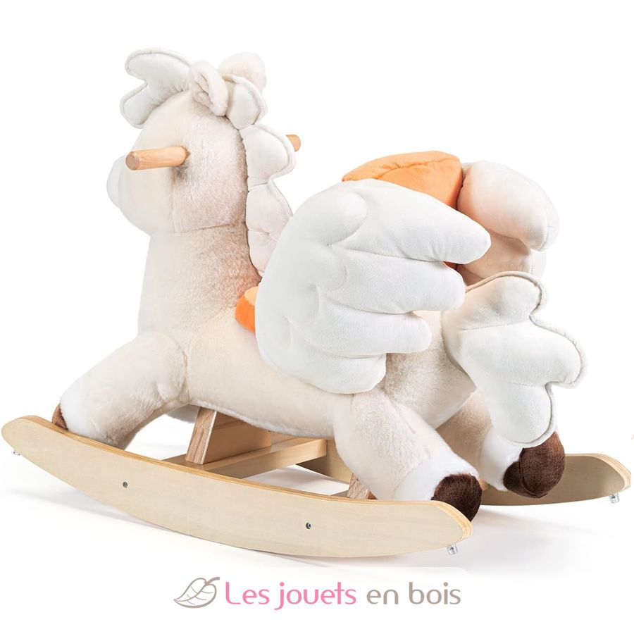 Con respaldo y correa de seguridad, este caballo balancín es apto para niños a partir de 9 meses.