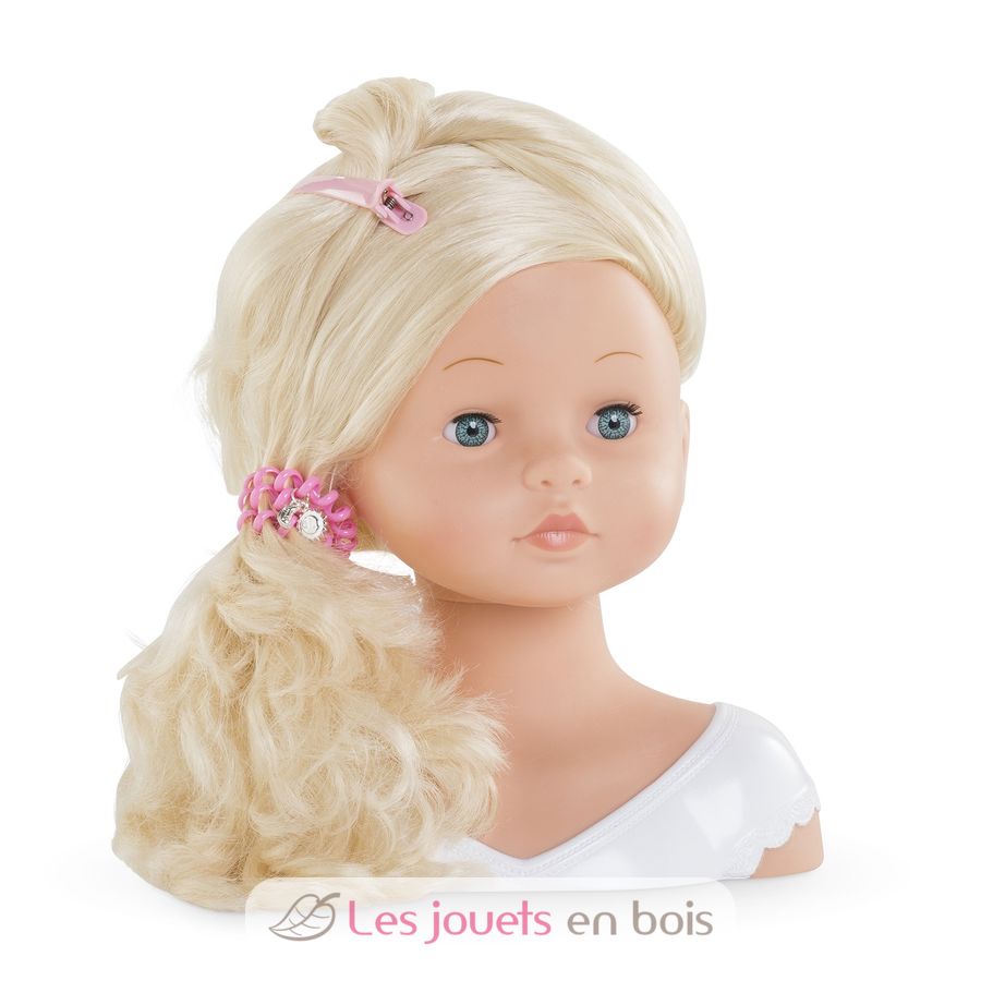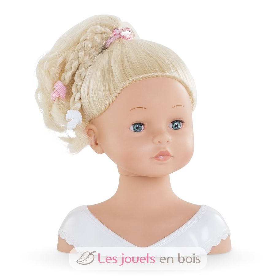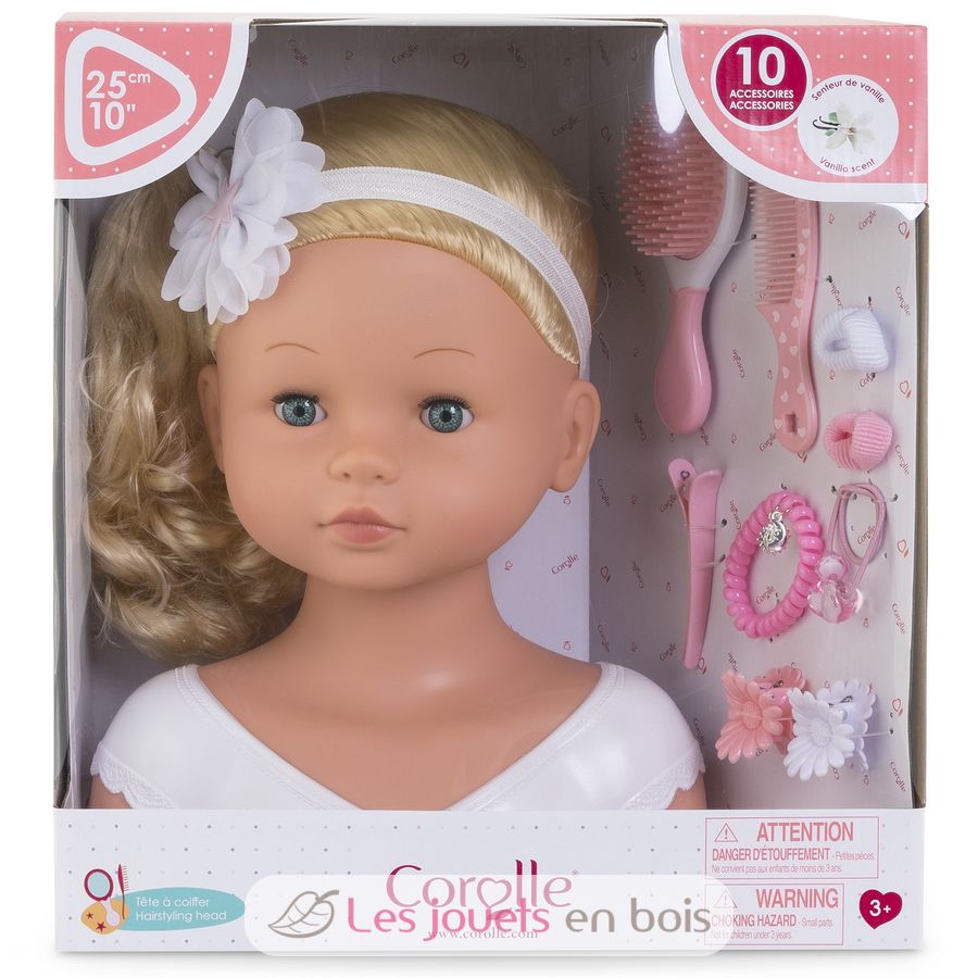 Este cabezal de peinado está hecho de vinilo suave al tacto con un delicado aroma a vainilla. Los ojos son fijos y con pestañas.