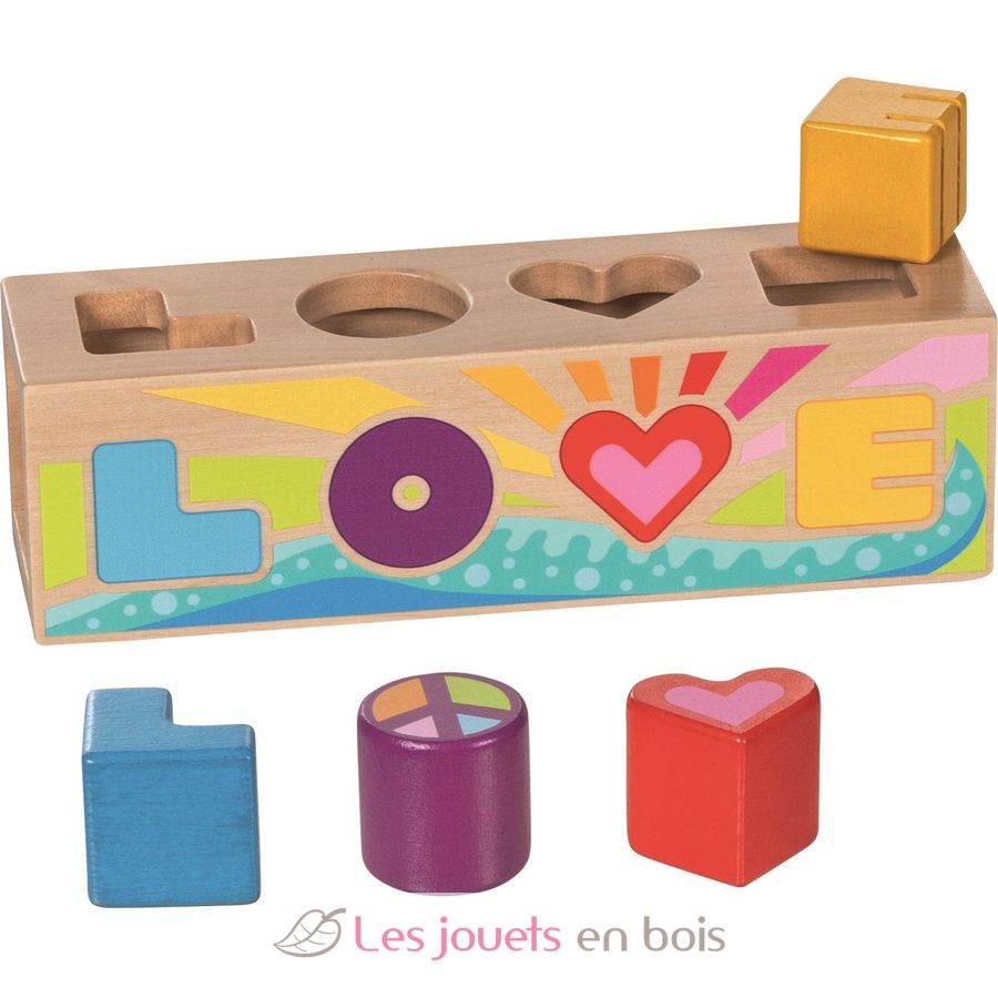 Caja de clasificación LOVE, un juguete de aprendizaje de madera de Goki. Referencia 58309.