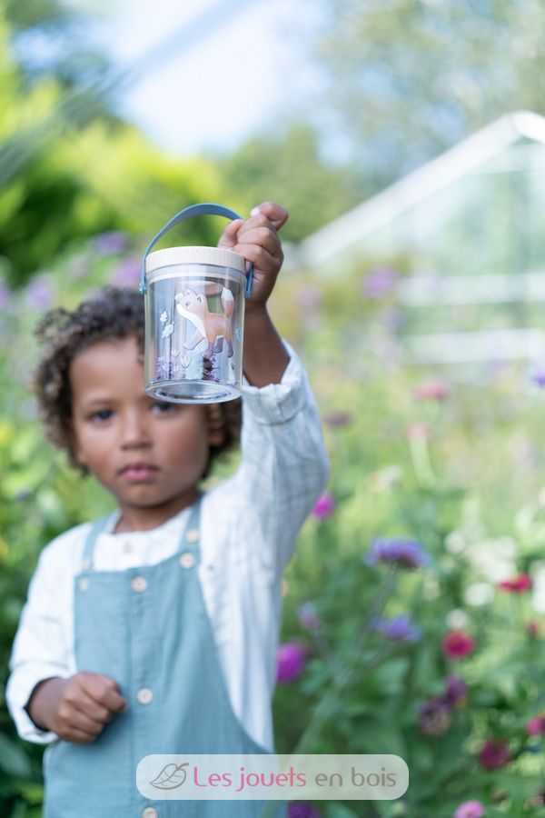 ¡Descubre el mundo de los insectos con esta práctica taza para insectos! Su tapa de madera, equipada con una lupa, permite observar los más mínimos detalles.