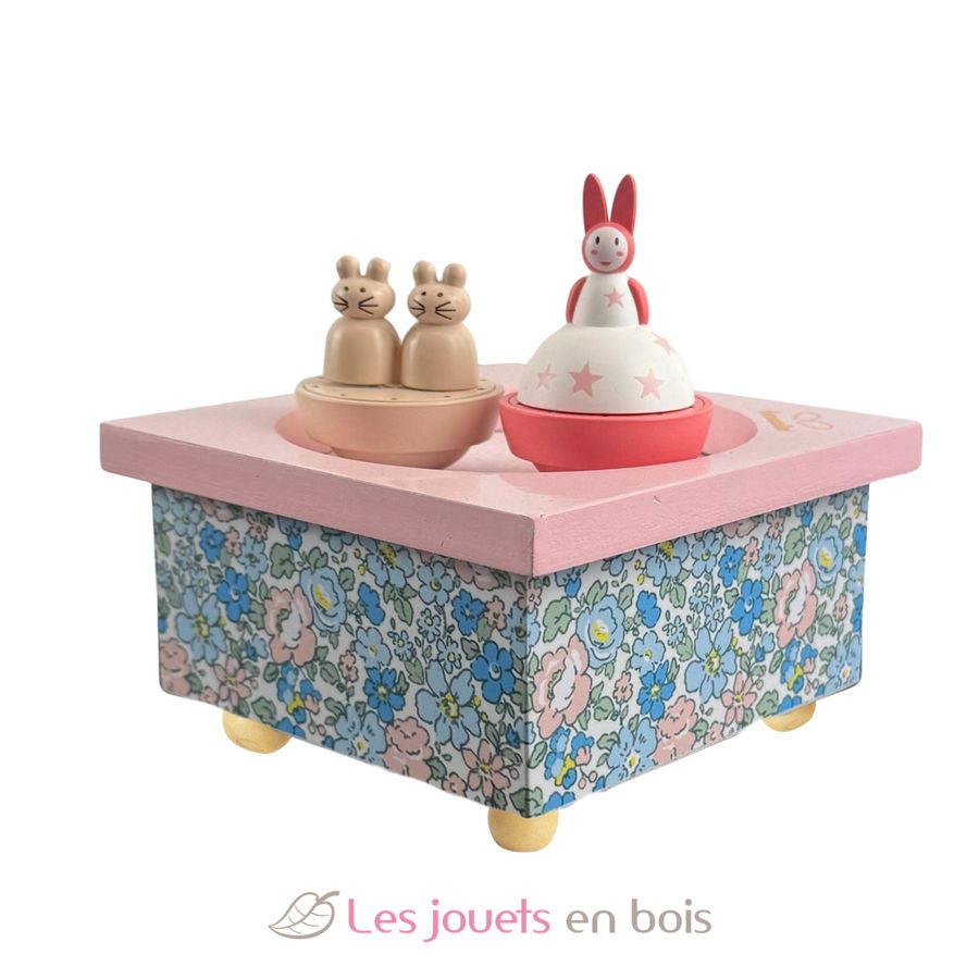 Bonita caja de música de madera. Las figuritas empiezan a girar cuando empieza la música. Ideal como regalo para baby shower.