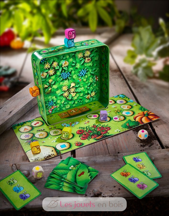 Los caracoles Esteban, Gloria y compañía participan en una divertida carrera de caracoles en el huerto de Wilfried y Marie. Aunque se mueven a paso de tortuga, a veces pueden adelantarse arrastrándose por encima del otro o adelantarse deslizándose. Con un poco de suerte en los dados y un poco de táctica para mover los caracoles, hazlos avanzar hasta el podio de los ganadores para conseguir el mayor número de puntos y ganar la partida! De 2 a 4 jugadores, a partir de 5 años.