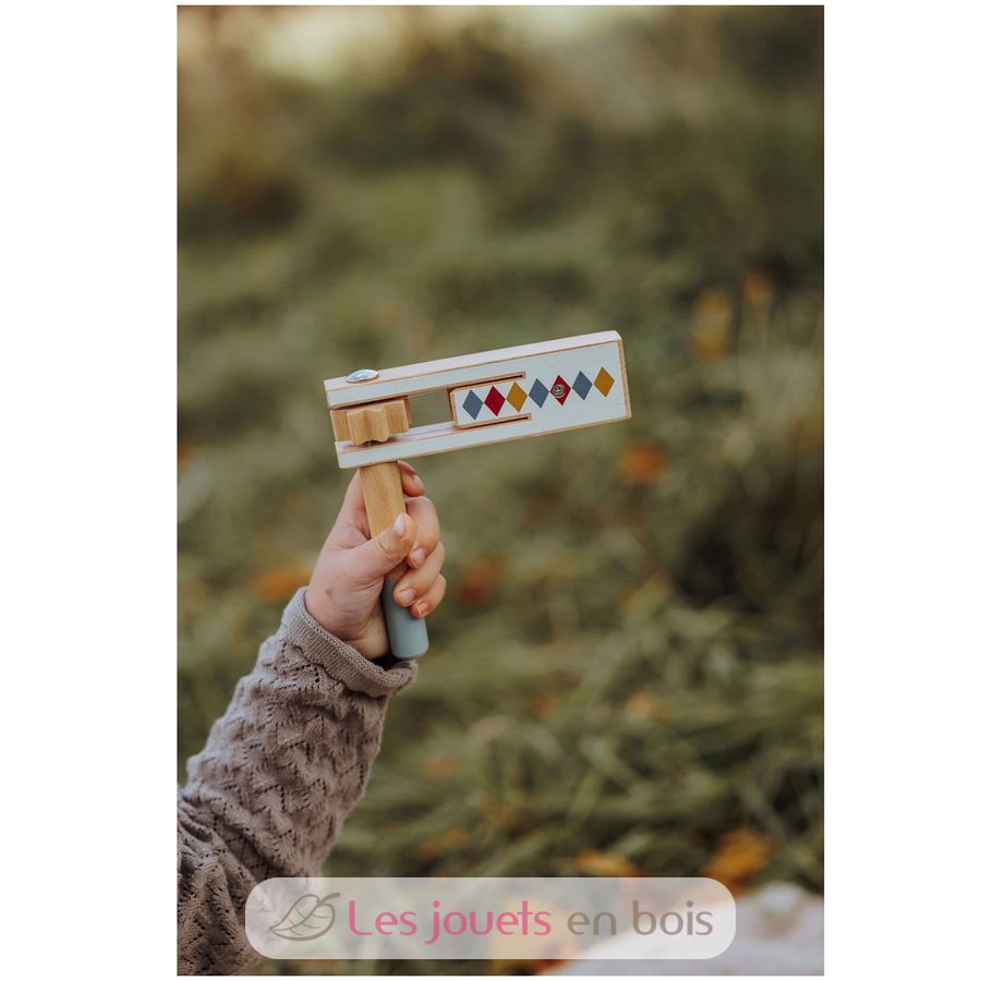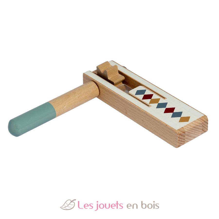 Esta carraca de madera es el juguete perfecto para los pequeños músicos. Es fácil de usar, divertido y una excelente manera de introducir a los niños al mundo de la música y el ritmo.