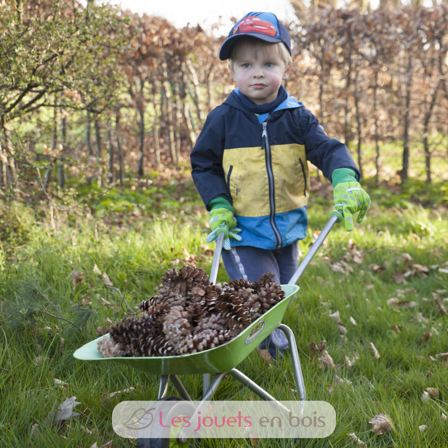 Bonita carretilla de metal verde para niños. La imprescindible carretilla de jardín... Con una longitud de 76 cm, esta bonita carretilla permitirá a su hijo acompañarle en el descubrimiento del jardín y la naturaleza.