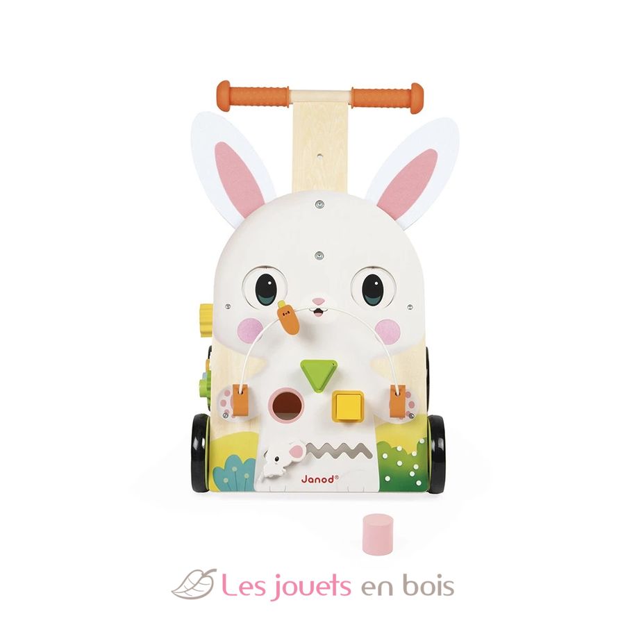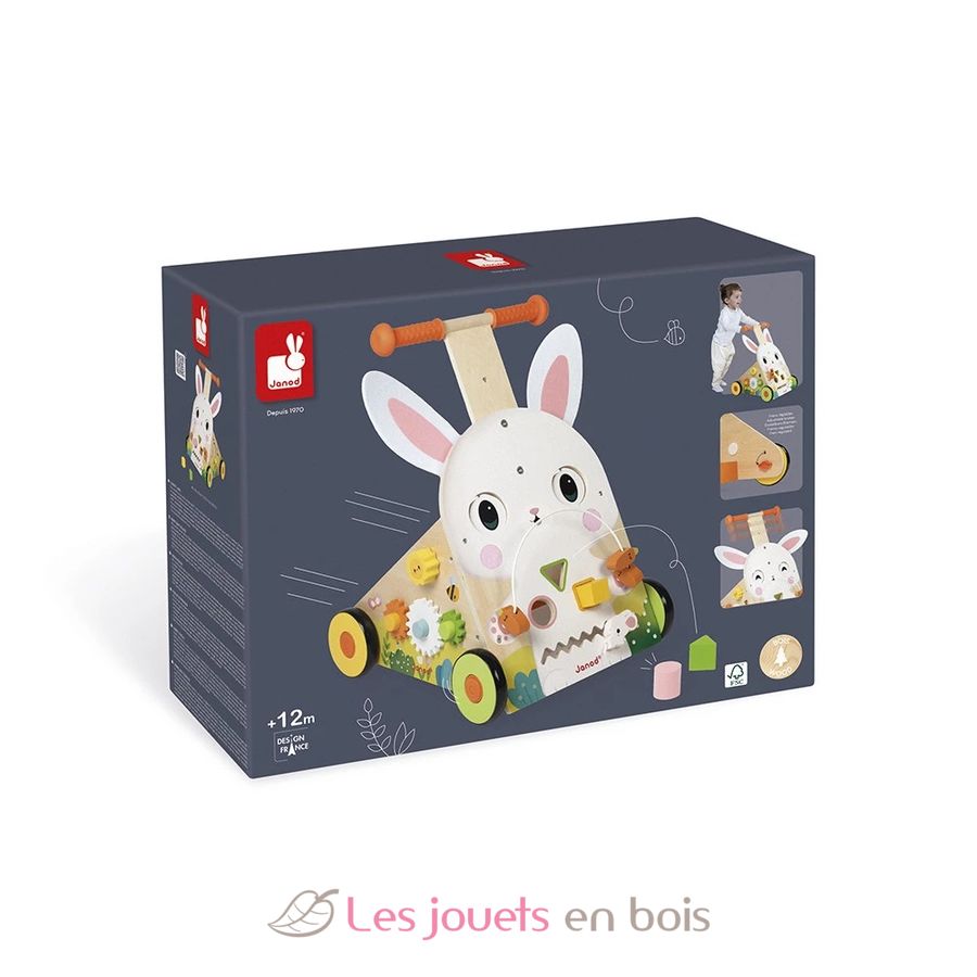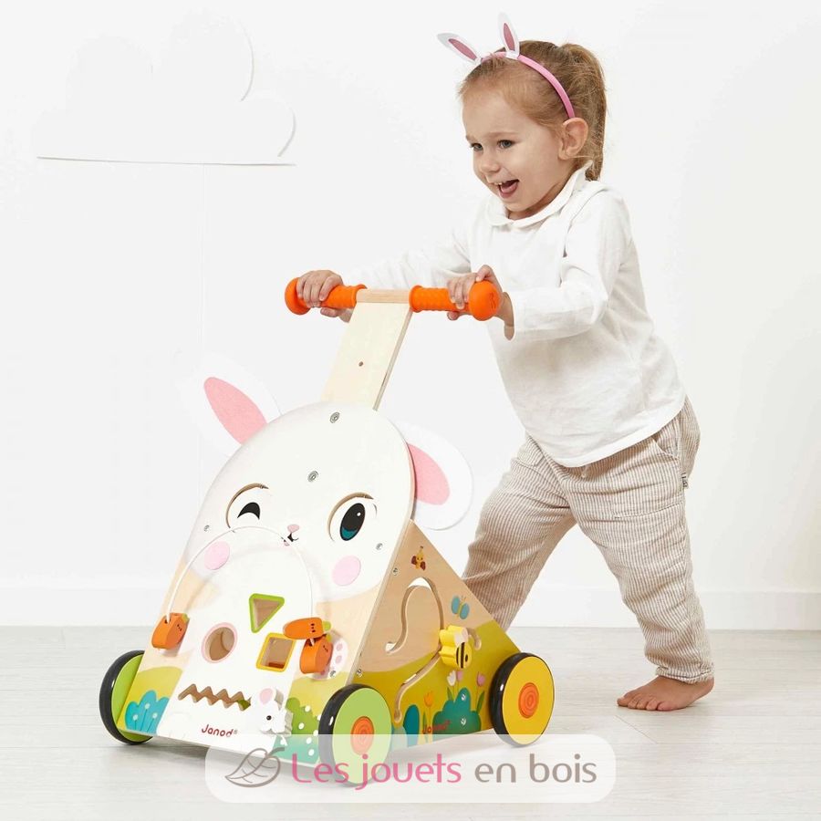 Carrito andador multiactividades Conejo, un juguete de aprendizaje temprano de Janod. Referencia J03326.