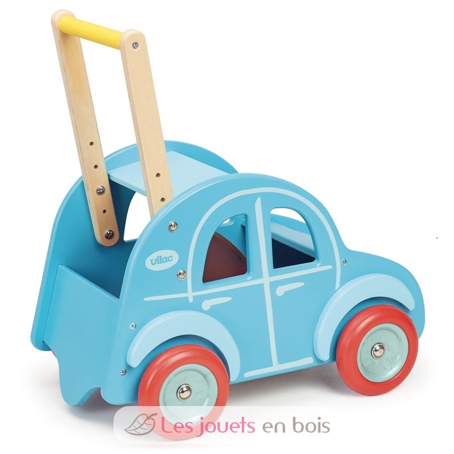 Carrito andador Dedeuch de Vilac... ¡Sucumbe al encanto de su estilo retro! Este carrito de madera ayudará al niño a desarrollar su motricidad y equilibrio mientras pasea a su peluche preferido a bordo de este bonito coche vintage. Requiere montaje. Referencia 1009.