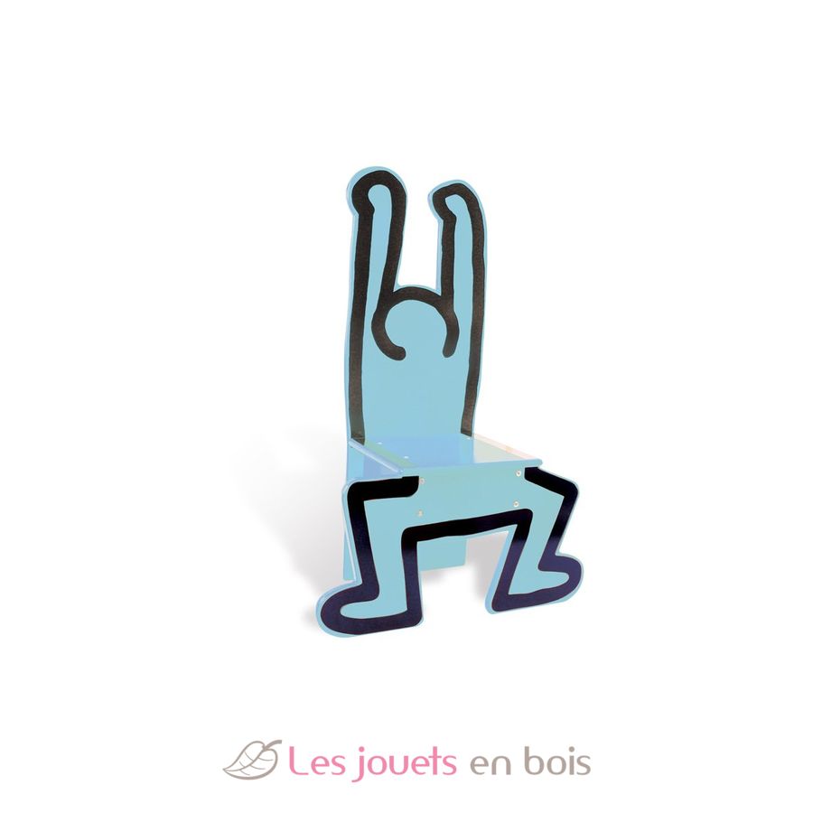Keith Haring (1958-90) ha dejado una obra en la que la inocencia esconde una verdadera inspiración, como si el artista no quisiera crecer nunca y mirara el mundo con ojos de niño para hablar mejor de los adultos. Esta silla de madera azul para niños, diseñada por Keith Haring, está fabricada en Francia, en el Jura, por Vilac.