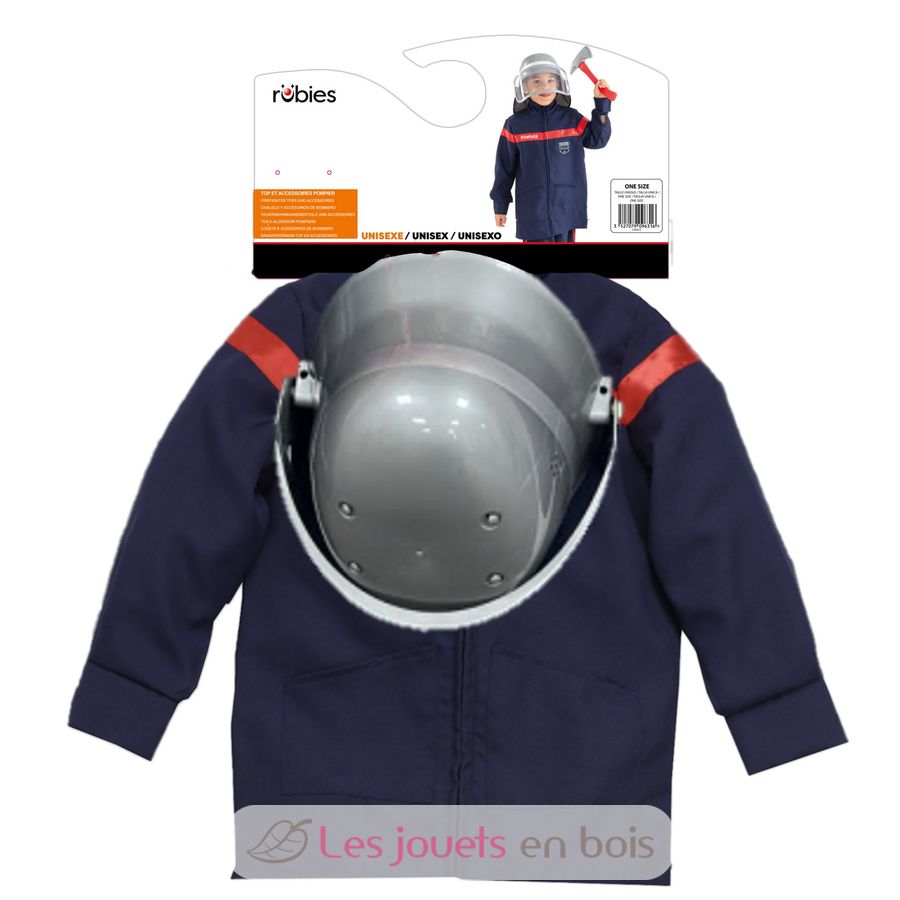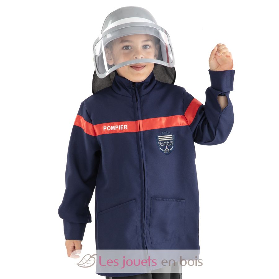 Este disfraz infantil incluye una chaqueta de bombero francesa azul marino con cremallera, dos bolsillos y un casco gris con visera. ¡Tu hijo se sentirá como un auténtico bombero!