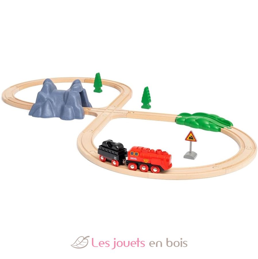 Circuito en forma de 8 con locomotora de vapor a baterías de la marca Brio. Referencia 36017.