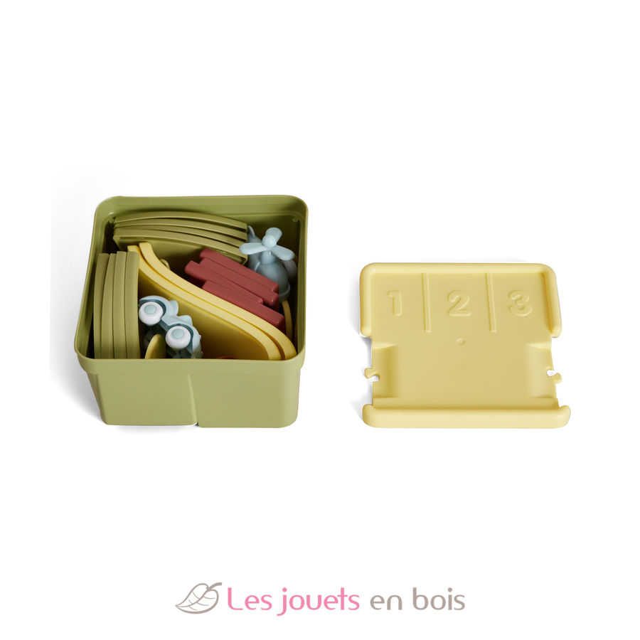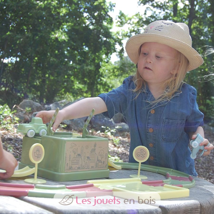 Este circuito de coches de Viking Toys es un set de juego que incluye 12 elementos de carretera, 2 rampas, 2 barreras, 1 coche, 1 helicóptero y 3 señales de tráfico de bioplástico. Una vez terminado el juego, todo lo que tienes que hacer es empaquetar las piezas en la caja. ¡También es perfecto para llevarlo contigo cuando viajas!