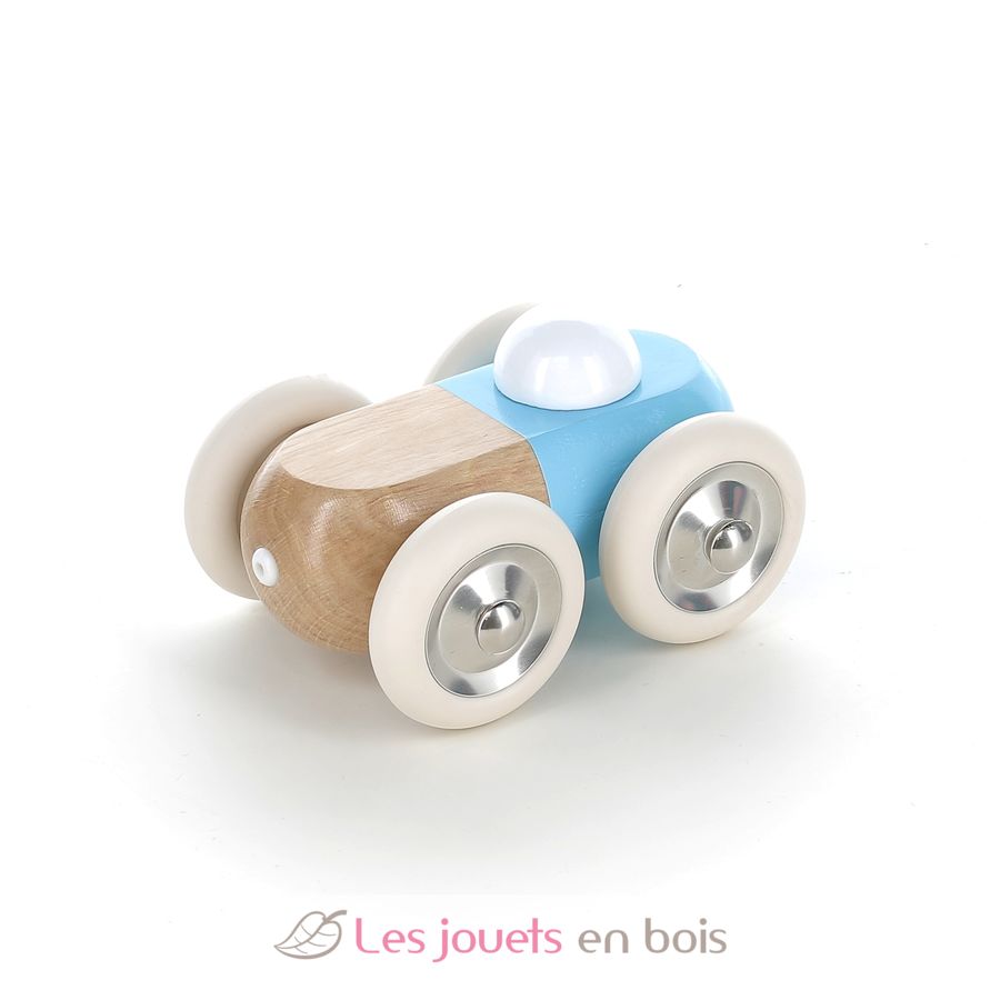 Coche de madera maciza azul, un juguete de madera para empujar fabricado por Vilac. Número de artículo 2312B.