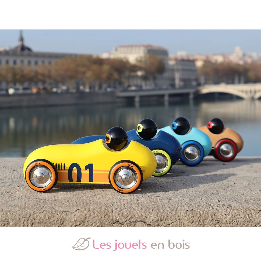 Este coche está hecho de madera de haya dura y fue producido en el taller de Vilac, en el corazón de las montañas del Jura, la cuna de los juguetes franceses.
