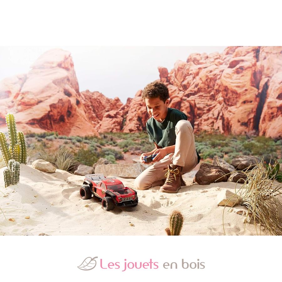 Con una autonomía de 40 m y una velocidad máxima de 14 km/h, este coche de carreras promete emociones fuertes.