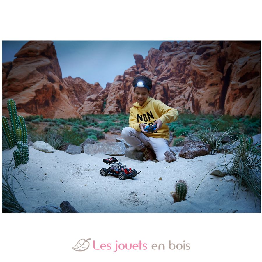 Buggy todoterreno radiocontrolado con luces de pista que funcionan de verdad y te permiten seguir la carrera incluso después del atardecer.