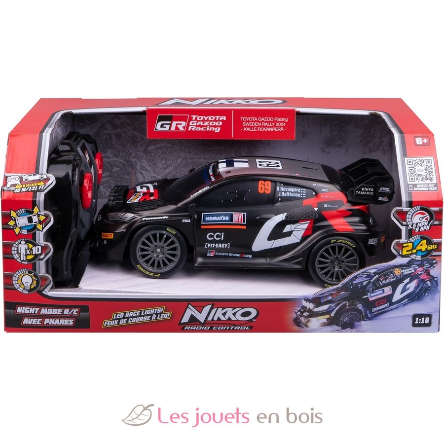 El Toyota Gazoo Racing Sweden Rally es el vehículo ideal para los amantes de la velocidad. Con un alcance de 40 metros y una velocidad máxima de 9 km/h, este vehículo radiocontrol promete emociones fuertes.