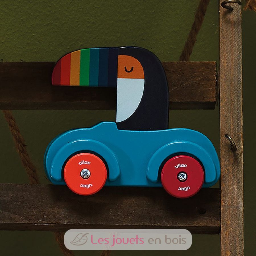 Coche tocando la bocina El Tucán, un juguete de madera para empujar fabricado por Vilac.