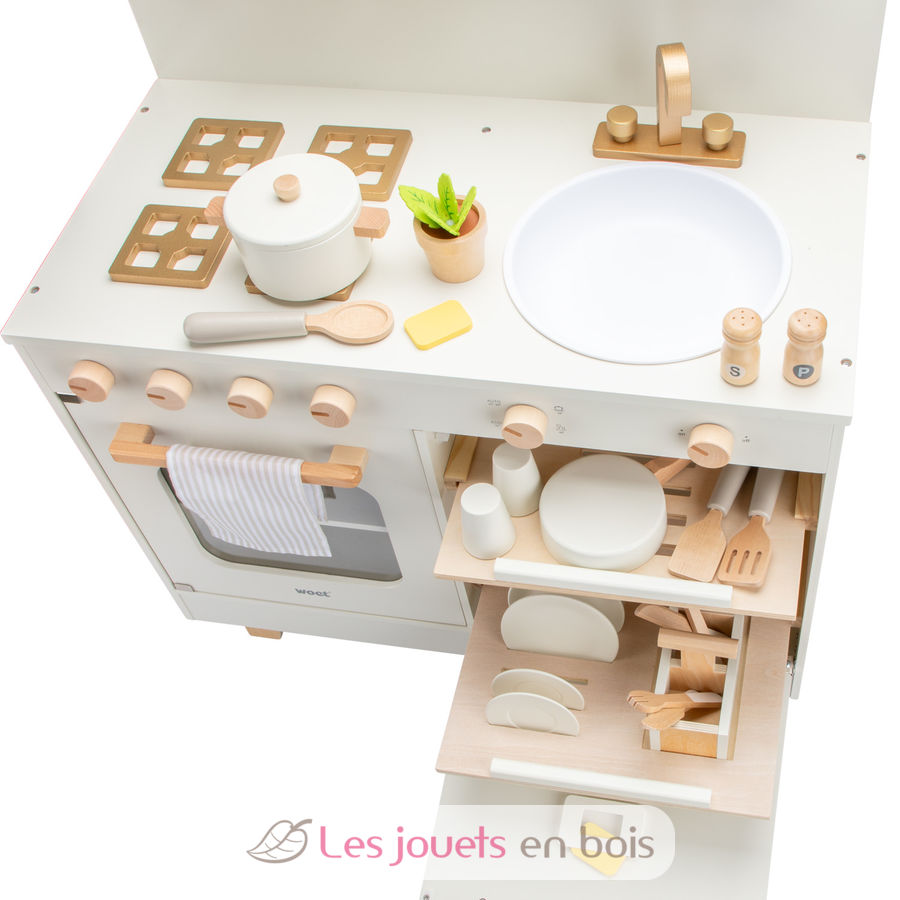 Esta encantadora cocina de madera, fabricada por New Classic Toys, tiene todo lo que los niños necesitan para adentrarse en el mundo de la cocina de juguete. Con tonos suaves, detalles en madera natural y un diseño elegante que se integra a la perfección en el interior de tu hogar, es un sueño hecho realidad para los pequeños chefs.