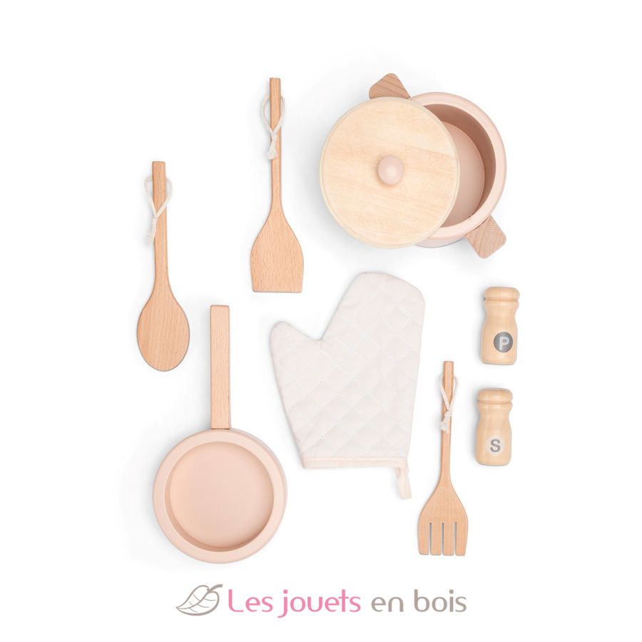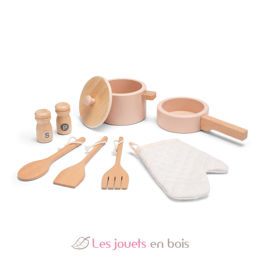 Los pequeños cocineros podrán preparar deliciosos platos para sus invitados a partir de 3 años gracias a los accesorios que incluye esta cocina: un cazo con tapa, una sartén, 3 utensilios, una agarradera, un salero y un pimentero.