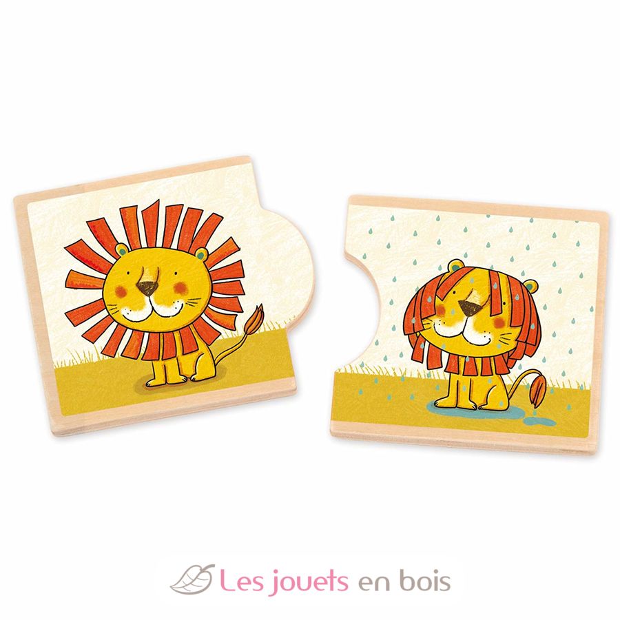 ¡Conoce a Leo, el rey de la selva y a sus amigos! Mientras se divierte, su hijo tendrá que emparejar pares y encontrar los opuestos. Puede ayudarse y corregirse con la ayuda de las 20 piezas de madera: si encajan perfectamente, ¡gana!