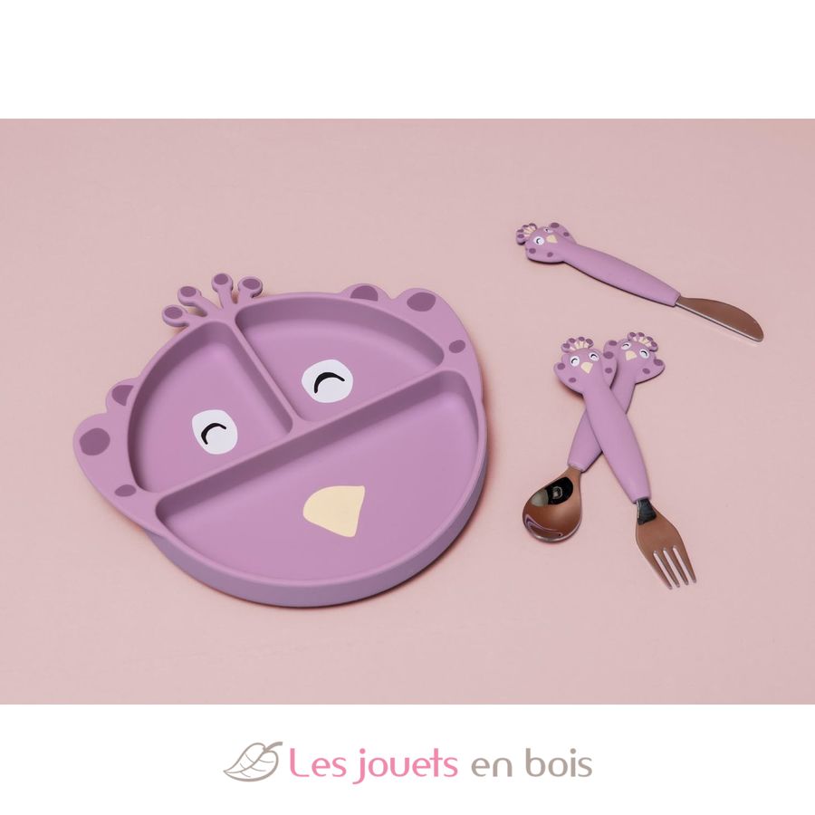 Inicio > Despertar y descubrir > Nacimiento > Una mesa > Cubiertos de 3 piezas en silicona Mrs Peacock